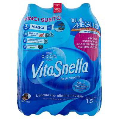 Vitasnella naturale cl 150 x 6 bottiglie classificazione oligominerale povera di sodio ricca di carbonati e di calcio
