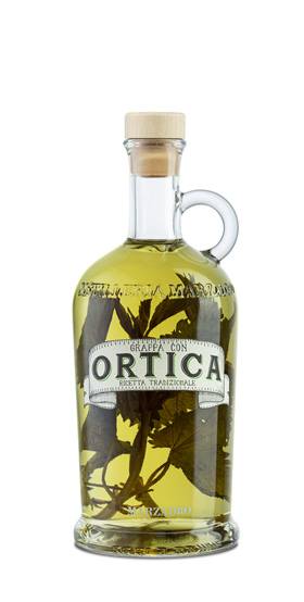 Grappa con Ortica Marzadro cl 50 ottenuta dall'infusione a freddo di foglie d'ortica in grappa di vinacce miste trentine selezionate sapore erbaceo e leggermente pungente dalla spiccata personalità