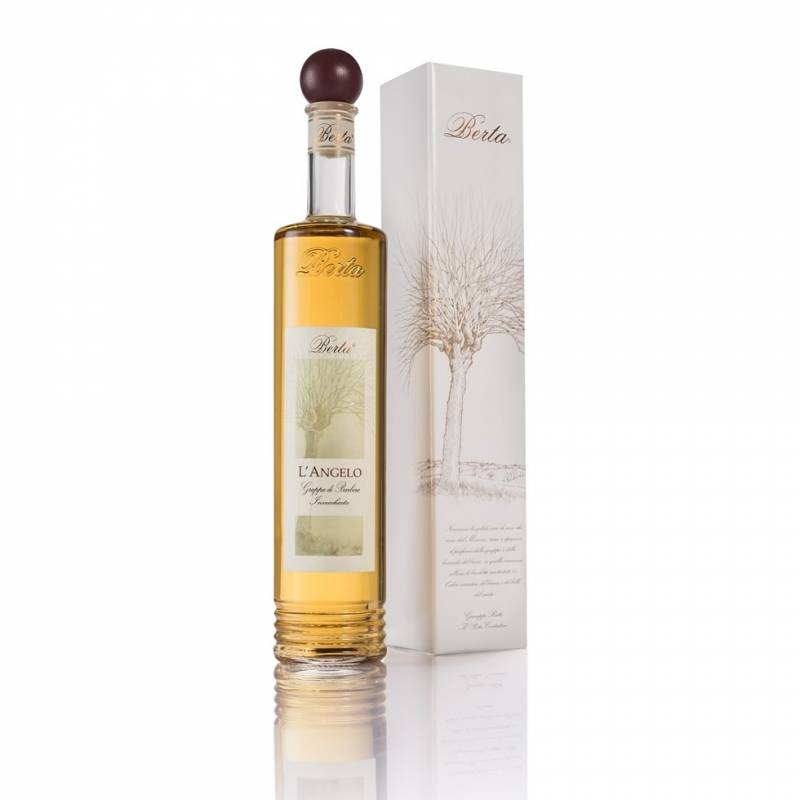 Grappa L'Angelo Berta cl 70 di monovitigno Barbera affinata 12 mesi in legno sapore di vena morbida con sentori di vaniglia e ciliegia