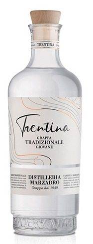 Grappa La Trentina Tradizionale Giovane Marzadro cl 70 ottenuta da vinacce di Teroldego Marzemino Merlot gusto elegantemente secco ed asciutta