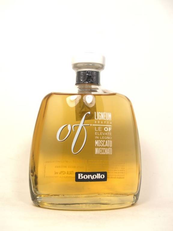 Grappa Bonollo Ligneum Moscato cl 70 dall’intensa aromaticità bouquet floreale e di frutta a polpa bianca piacevoli note speziate la morbidezza deriva dall'invecchiamento in botti di rovere