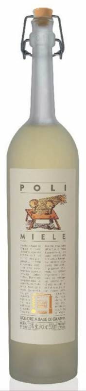 Grappa Poli Miele cl 50 liquore a base di grappa di miele di acacia con olii essenziali di pino mugo ginepro menta e verbena servire fredda agitare prima dell'uso ottimo digestivo