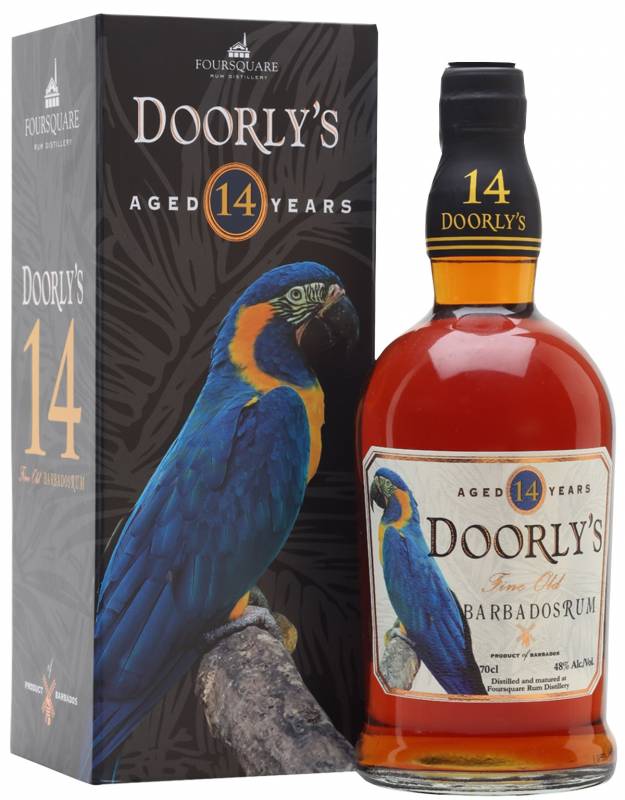 Rum Doorly 14 anni cl 70 da Barbados invecchiato in botti ex-bourbon ed ex-madeira il gusto è ricco e dolce con sentori di frutta tropicale ciliegia zenzero e mela caramellata retrogusto con note di cioccolato