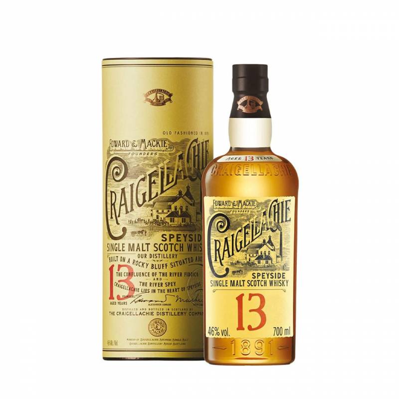 Whisky Craigellachie 13 anni cl 70 single malt dello Speyside dagli aromi fruttati e dolci con note di caramello miele e vaniglia nel finale sfumature leggermente tostate e solo qualche cenno di affumicato