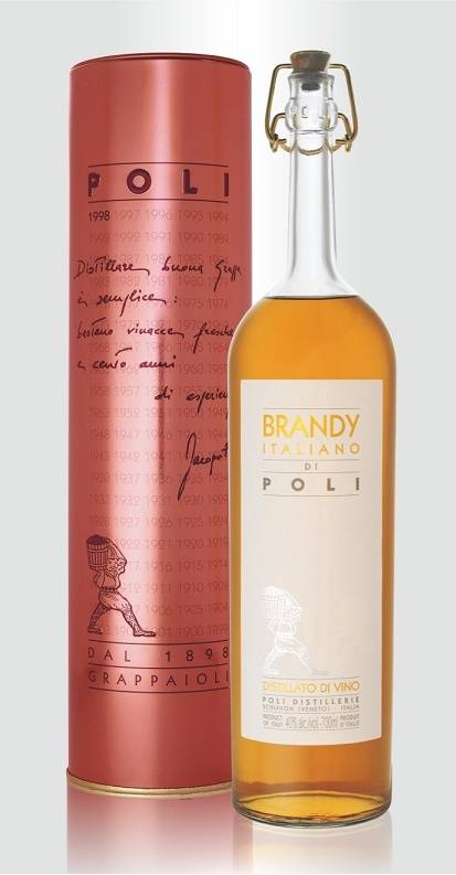 Brandy Italiano di Poli cl 70 confezione latta invecchiato 3 anni in botti di legno aroma di spezie caffè noce moscata e vaniglia