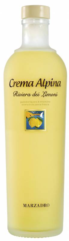 Crema Riviera dei Limoni Marzadro cl 70 il sapore dei limoni si mescola al candore della panna ottenuta con fresco latte trentino ottimo a fine pasto e con dessert o gelato