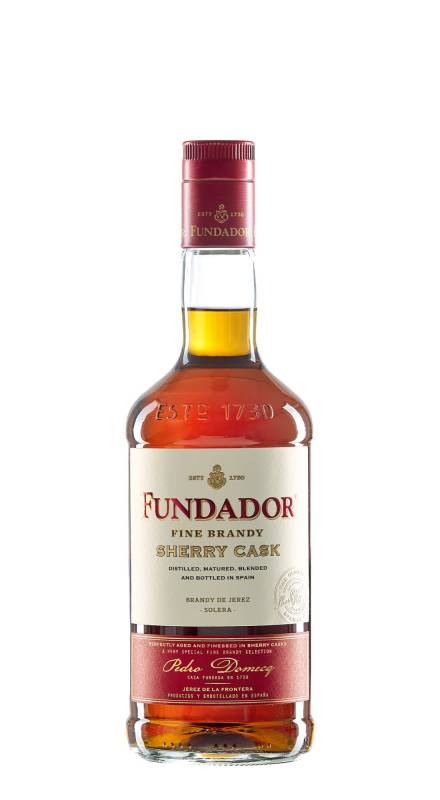 Brandy Fundador Sherry Cask cl 70 invecchiato in botti di rovere che hanno contenuto sherry colore giallo ambrato molto intenso gusto complesso di tostatura e speziatura dolce in un rincorrersi di vaniglia