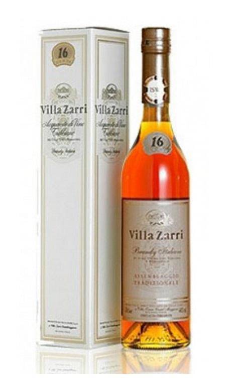 Brandy Villa Zarri 16 anni cl 50 assemblaggio tradizionale 16 anni sentori di tostatura delicata del legno con scia di cuoio e tabacco arricchita di albicocca e arancia candita