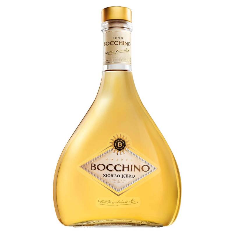 Grappa Bocchino Sigillo Nero cl 70 ottenuto dalla selezione di vinacce di Barbera d’Asti Nebbiolo e Dolcetto d’Alba profumo delicato sapore fragrante pulito e secco