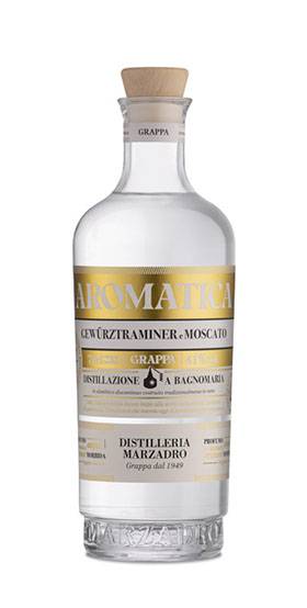 Grappa Bivitigno Aromatica Marzadro cl 70 da uve Gewurztraminer e Moscato la distillazione preserva la componente aromatica delle uve le note agrumate e la struttura armonica e vellutata