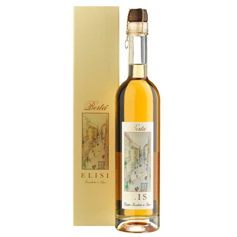 Grappa Elisi Distilleria Berta cl 50 da vitigni Barbera e Cabernet profumo complesso e ampio con sentori di cacao e marasca sapore ricco ed avvolgente con le sensazioni avvertite nel profumo