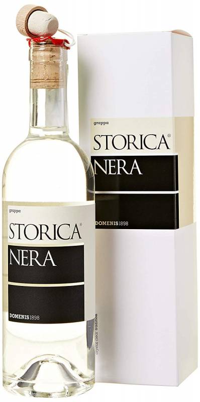 Grappa Storica Nera Distilleria Domenis cl 50 all’olfatto ricca fine rigorosa nei sentori e armoniosa al retrogusto si caratterizza per bouquet rotondo ed equilibrato