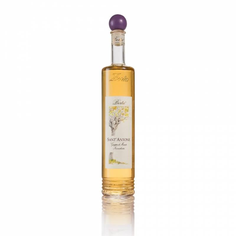 Grappa di Moscato Sant'Antone invecchia 12 mesi in barrique, profumo elegante e armonioso gusto morbido con sentori di salvia agrumi e vaniglia