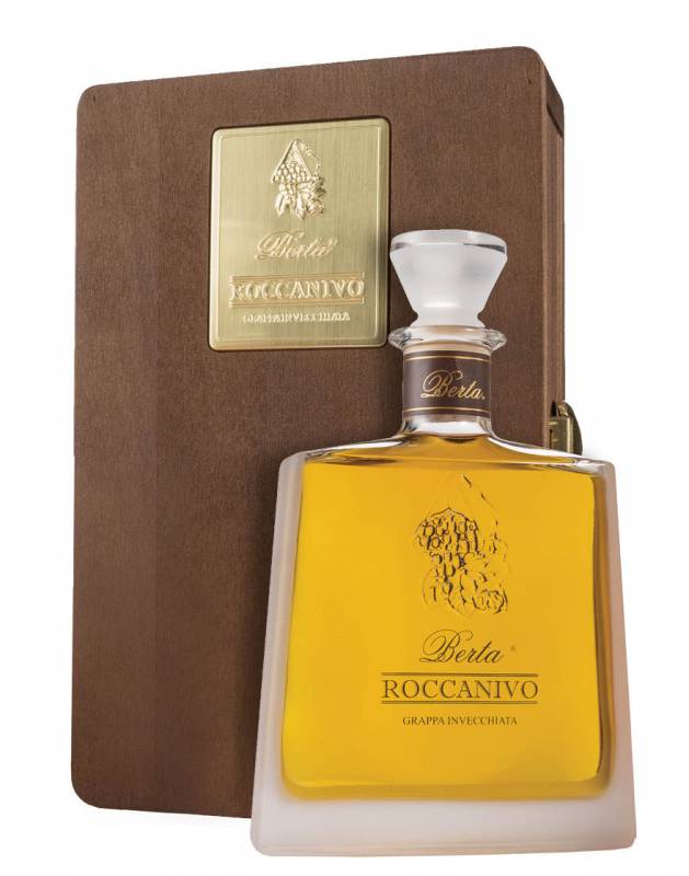 Grappa Roccanivo Distilleria Berta cl 70 in legno da vinacce di Barbera selezionate dai migliori produttori con l'utilizzo di legni diversi gusto delicato avvolgente di grande armonia e persistenza