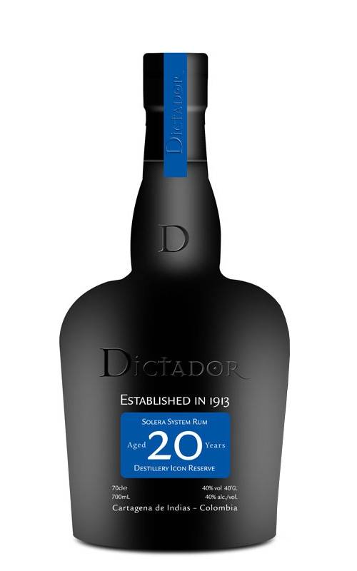 Rum Dictador 20 anni cl 75 dalla Colombia gusto con note di caramello vaniglia miele di millefiori retrogusto con sentori di buon legno note di datteri secchi e prugne permane la carezzevole dolcezza al palato