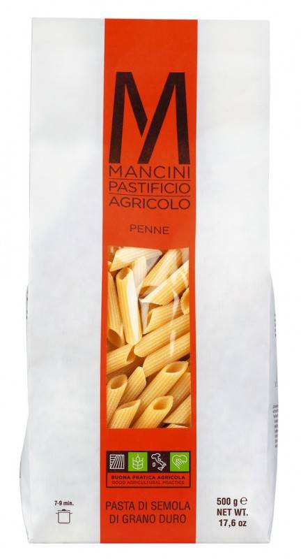 Penne Lisce Turaniche Bio Mancini gr. 500 Il grano turanico è una sottospecie antica di grano duro, selezionata dall'uomo più di 4.000 anni fa nella regione del Khorasan (Nord-Est dell'Iran) si distingue per l'elevata digeribilità