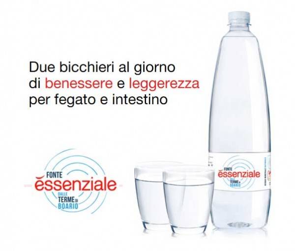 Acqua Essenziale litro Pet dalle Terme di Boario povera di sodio e ricca di solfati e magnesio indicata per depurare il fegato e stimolare l'intestino