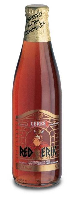 Birra Red Erik Ceres cl 33 dalla Danimarca rossa ambrata gusto fresco e delicato leggermente dolce con una punta di acidità é ideale con la pizza ed una divertente serata tra amici