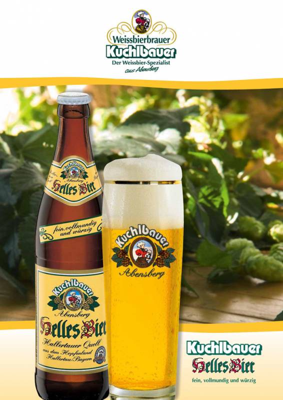 Birra Kuchbauer Helles cl 50 tedesca bionda dal gusto delicato morbido e pieno con una persistenza dolce ed il delicato amaro del luppolo ottima con pizza nelle varie versioni oppure anche con piatti freddi estivi