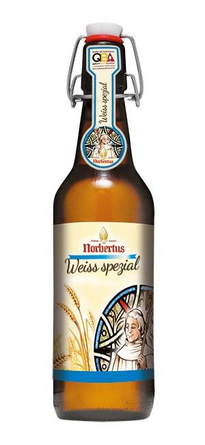 Norbertus Weisse Spezial cl 50 prodotta solo con acqua malto e luppolo torbida ed intensamente fruttata ottima con formaggi freschi di capra salmone fresco, tonno alla piastra e con pizza di verdure e acciughe