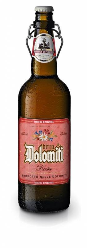 Birra Dolomiti Rossa cl 75 doppio malto dall'aroma delicato composto da una miscela tra note di caramello e malto torrefatto adatta a piatti di carne frutta secca e dessert