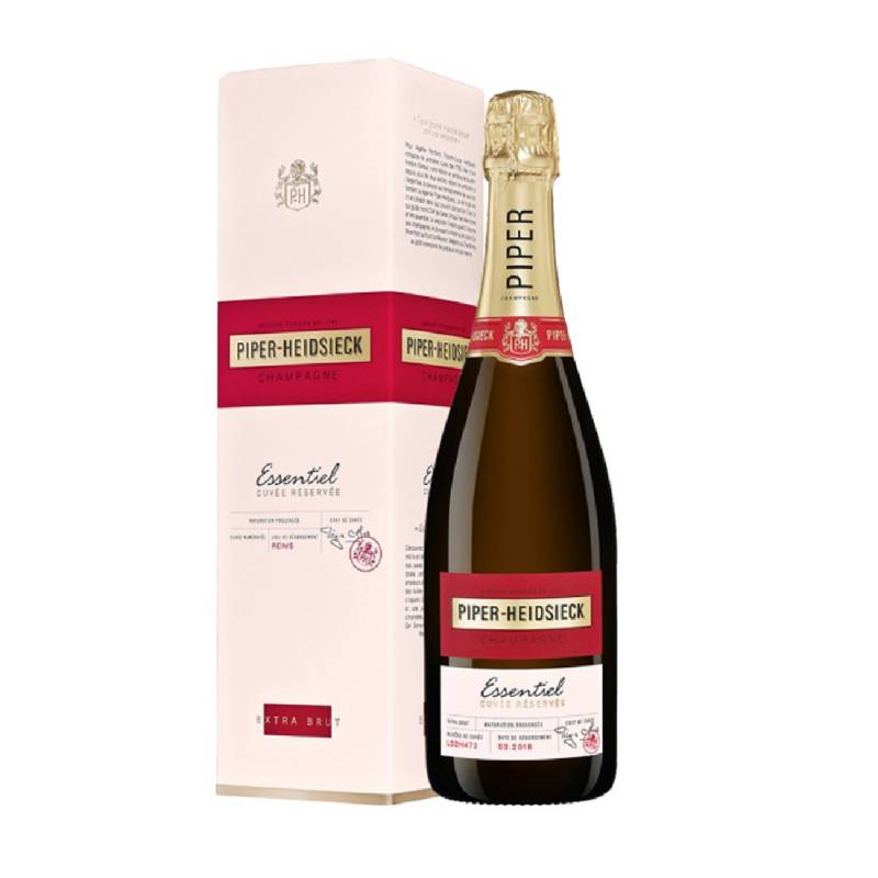 Champagne Piper Heidsieck Essentiel Brut cl 75 frutto dell' assemblaggio di vini giovani e vini riserva maturato per almeno 4 anni in bottiglia delicato perlage il sorso è cremoso e rotondo alla vivace ed elegante freschezza