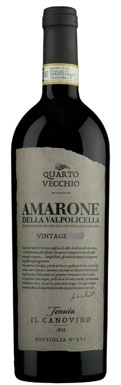 Vino Amarone Tenuta il Canovino cl 75 affina 3 anni in botti ri rovere ed un anno in bottiglia sapore pieno, caldo e vellutato ideale per carne , arrosti, selvaggina si consiglia di stappare un'ora prima di servire