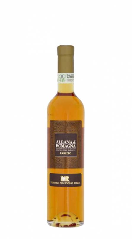 Vino Albana Passita Monticino Rosso cl 50 sapore pregiato ed equilibrato nel finale note di agrumi e vaniglia ottimo vino da dessert e da meditazione