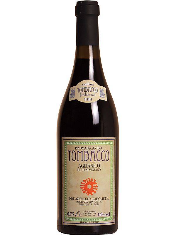 Vino Aglianico Cantina Tombacco cl 75 gusto elegante avvolgente pieno sapido e persistente al naso sentori di ciliegia prugna e spezia adatto a arrosti di carne rosse e formaggi stagionati