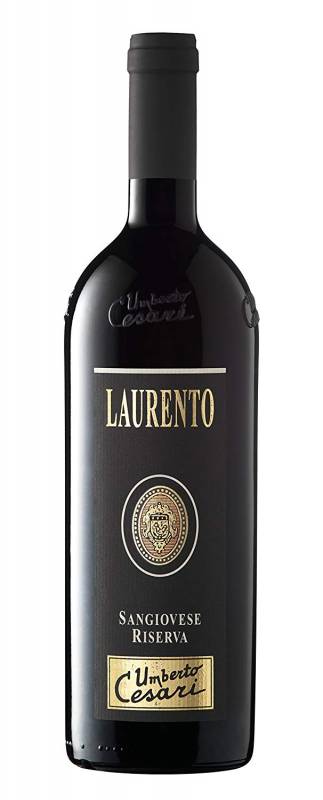 Vino Laurento Sangiovese Doc Riserva Cesari cl 75 affinamento 24 mesi di botti di rovere gusto secco ampio leggermente tannico adatto ad arrosti minestre condite come le lasagne all'emiliana