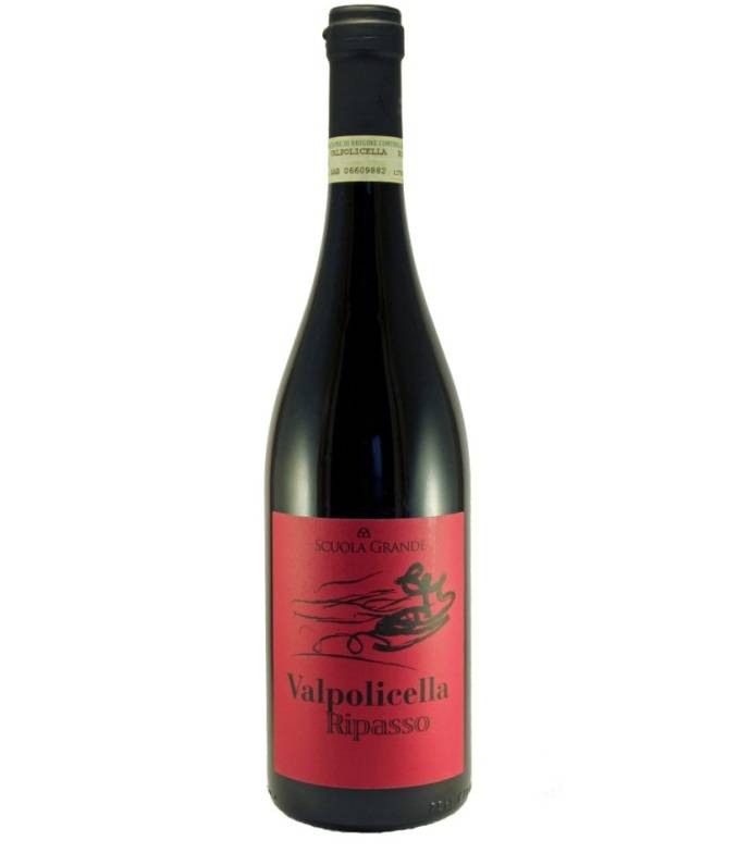 Vino Ripasso della Valpolicella Scuola Grande cl 75 profumo fine e complesso sapore di buona struttura e persistenza e sapidità si sposa con gli stracotti in genere e con le carni alla griglia
