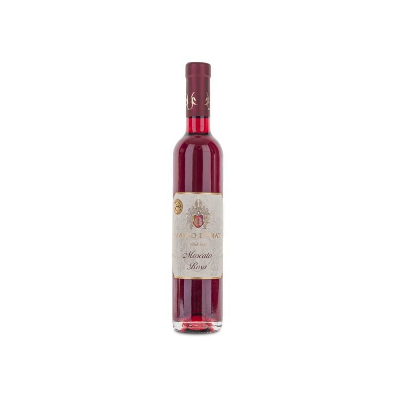 Vino Moscato Rosa Donati cl 375 al naso delicate sensazioni floreali e sentori di petali di rosa all'assaggio elegante ed avvolgente con piacevole dolcezza ottimo con dolci e dessert