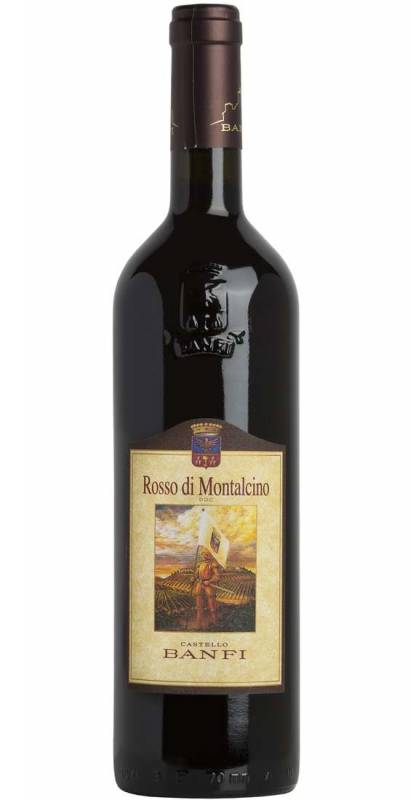 Vino Rosso di Montalcino Banfi cl 75 invecchiato 10-12 mesi e di beva immediata rispetto al Brunello fresco versatile e morbido ottimo con cacciagione e formaggi di media stagionatura