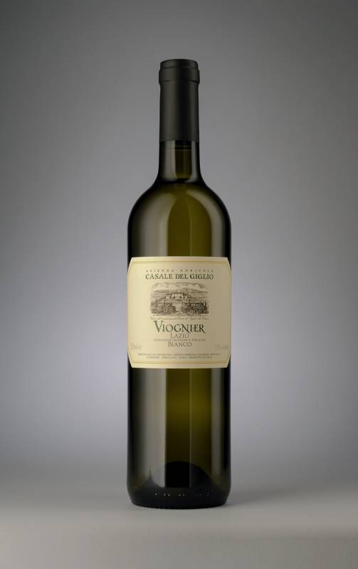 Vino Viognier Casale del Giglio cl 75 vitigno originario della Valle del Rodano al palato sensazioni di pesca e albicocca molto pronunciate gusto bilanciato fresco e minerale ottimo con il pesce