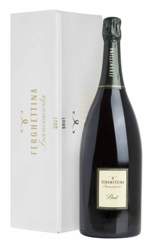 Ferghettina Franciacorta Brut cl 150 da uve Chardonnay 75% e uve Pinot Nero 5% un perlage fine e persistente sapore ampio con piacevole morbidezza affinamento sui lieviti 30 mesi adatto a tuttopasto