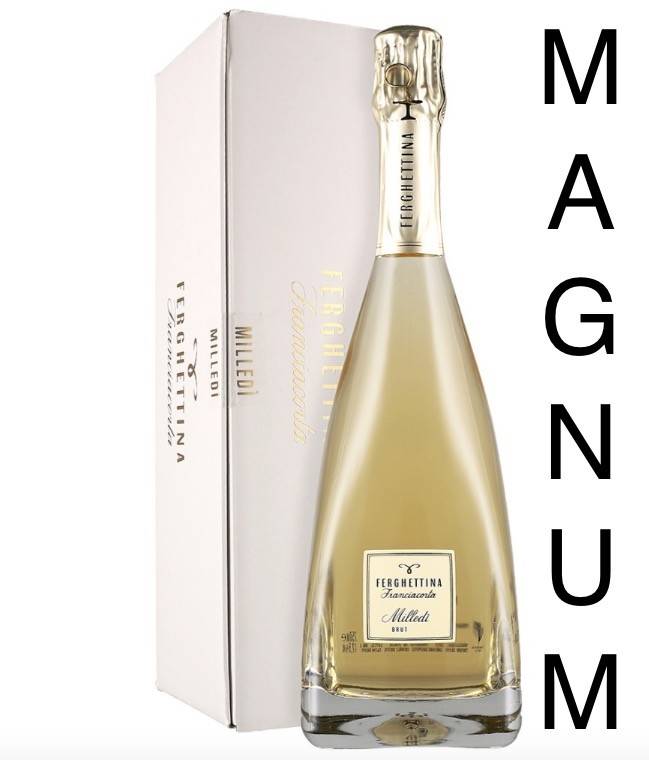 Ferghettina Franciacorta Milledì cl 375 da uve 100% Chardonnay 80 mesi sui lieviti Colore giallo paglierino con riflessi oro verde perlage fine e persistente al gusto note agrumate e minerali