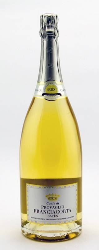 Conte di Provaglio Saten cl 150 Franciacorta Chardonnay in purezza 36 mesi sui lieviti sapore fresco sapido e cremoso adatto a tuttopasto